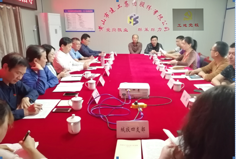 “工地建黨校、黨課進(jìn)工地”,2019年4月26日下午市委組織部非公工委朱永進(jìn)書記在百忙之中蒞臨黃山市建工集團(tuán)承建的中儲(chǔ)糧銅陵直屬庫黃山分庫工地指導(dǎo)工作,并在我公司“工地黨?!睘榇蠹疑狭艘惶谩吨袊伯a(chǎn)黨支部工作條例(試行)》專題黨課。參加黨課學(xué)習(xí)的有:黃山市建工集團(tuán)黨總支班子成員及下屬機(jī)關(guān)、第一、第二、第三黨支部書記;市城投集團(tuán)黨委領(lǐng)導(dǎo)及城投公司第四黨支部黨員領(lǐng)導(dǎo)干部;項(xiàng)目工地全體黨員、入黨積極分子約30人。
