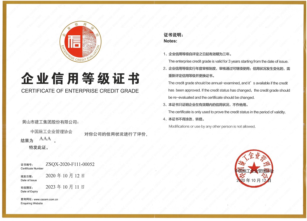 榮譽的獲得,是對黃山建工集團近年來信用體系建設(shè)工作的充分肯定,公司將進一步規(guī)范管理,增強誠信意識,守信踐諾,為工程建設(shè)行業(yè)的持續(xù)健康發(fā)展做出新貢獻。