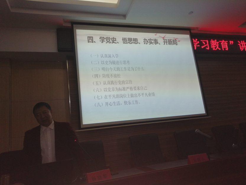 動(dòng)員結(jié)束后,緊接著由市委黨校楊曉黎教授為我們作了精彩的“黨史學(xué)習(xí)教育”專題報(bào)告。楊教授為我們解讀了中國(guó)共產(chǎn)黨由誕生、發(fā)展、壯大到建立新中國(guó),以及帶領(lǐng)全國(guó)人民建設(shè)小康社會(huì)艱難而輝煌的革命歷程。同時(shí)楊教授也結(jié)合自己對(duì)黨史的研究體會(huì),以豐富的史實(shí)、鮮明的觀點(diǎn)、精辟的語(yǔ)言,向我們闡述了中國(guó)共產(chǎn)黨100年艱苦卓絕的風(fēng)雨歷程,總結(jié)出沒(méi)有共產(chǎn)黨就沒(méi)有新中國(guó)的偉大真理。報(bào)告深入淺出、內(nèi)容豐富,對(duì)我們加強(qiáng)黨的歷史和思想政治理論學(xué)習(xí),進(jìn)一步提高黨性修養(yǎng),具有很強(qiáng)的理論指導(dǎo)作用。報(bào)告很受教育,很受啟發(fā),收獲很大。會(huì)議最后,集團(tuán)總支副書(shū)記汪明星要求廣大黨員干部認(rèn)真學(xué)習(xí)領(lǐng)會(huì),掌握實(shí)質(zhì),以飽滿的工作熱情和扎實(shí)的工作作風(fēng),認(rèn)真履行職責(zé),努力工作,為公司的發(fā)展壯大貢獻(xiàn)力量。