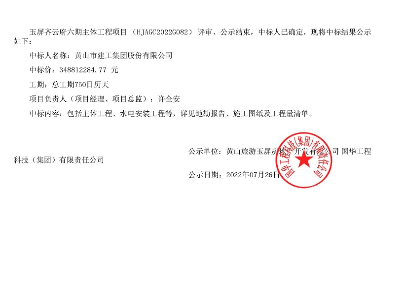 7月22日公司經(jīng)營一線再傳捷報,一舉中標(biāo)了至今為止我公司史上中標(biāo)的最大單位建筑項(xiàng)目--玉屏齊云府六期主體工程,總建筑面積約15.1萬平方米,總造價348812284.77 元,為公司贏得了良好的社會效益。