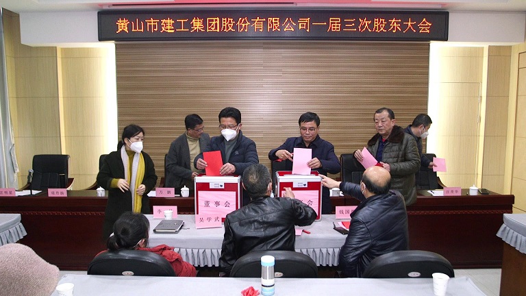 會上經(jīng)過審議,表決通過《黃山市建工集團(tuán)股份有限公司第二屆董事會、監(jiān)事會換屆選舉辦法》,選舉項(xiàng)端陽、許自兵、葉金發(fā)、萬鵬、吳學(xué)武、方哲源、陳德明為二屆董事會成員;選舉錢國徽、李丹、孫紅明、蘇國強(qiáng)、程永華為二屆監(jiān)事會成員。