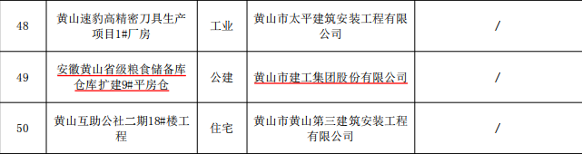 近日,黃山市住房和城鄉(xiāng)建設(shè)局公布了2025年度黃山市建設(shè)工程“迎客松杯”獎獲獎名單。黃山建工集團承建的安徽黃山省級糧食儲備庫倉庫擴建9#平房倉項目、黃山區(qū)2019-15地塊6#樓項目及黃山橫江灣凱悅嘉軒酒店項目成功斬獲三項“迎客松杯”獎。